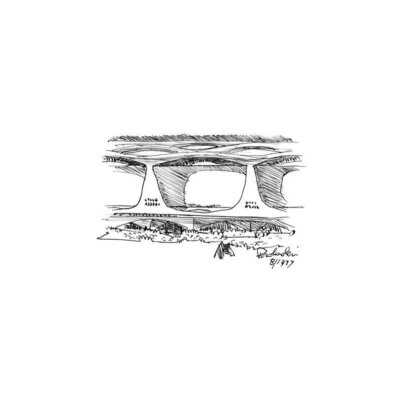 Soleri’s vertical towers integrate not only urban functionality within, but also resonate with the rhythm of the surrounding nature, sometimes referred by Soleri as “Cosmic Potentials."